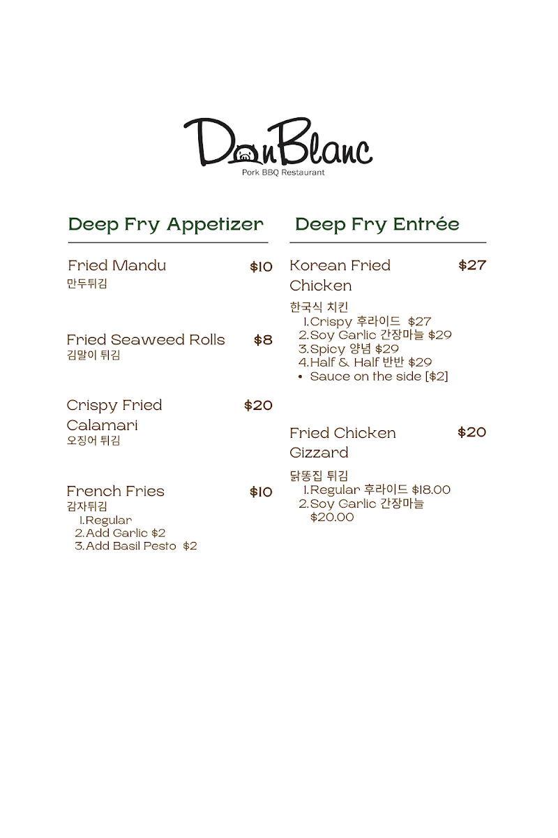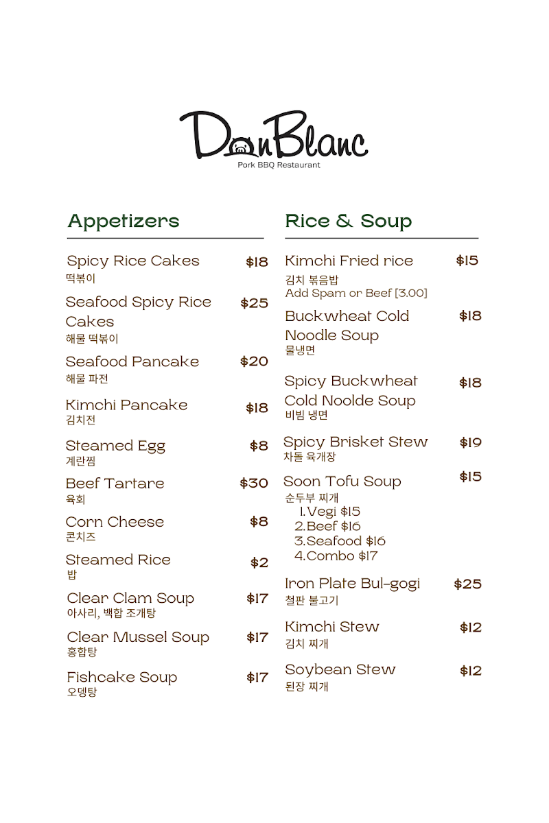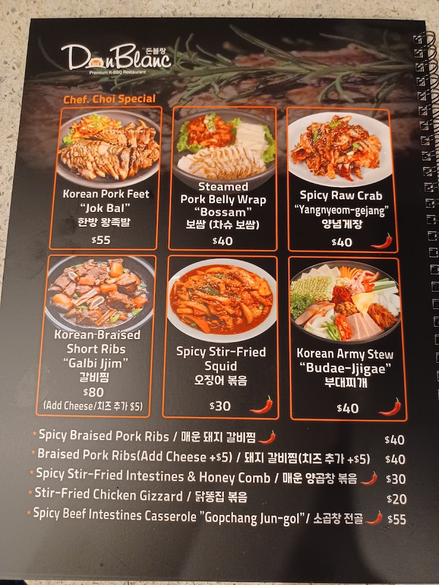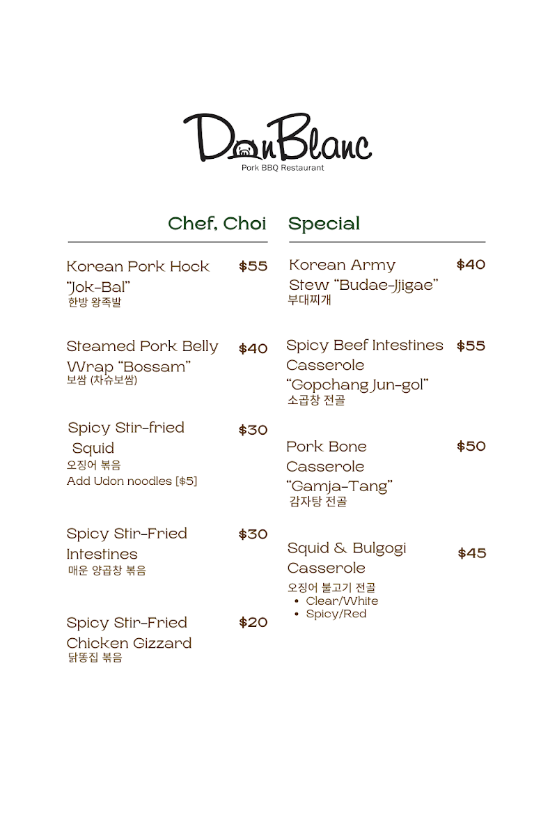 Don Blanc specializes in high-quality meats and a rich variety of traditional Korean dishes. Here, you can savor the vibrant flavors of well-marinated options such as Spicy Stir-Fried Squid and Korean Pork Feet (JokBal). Each dish is prepared with an emphasis on freshness, loving attention, and culinary skill, ensuring that every bite bursts with flavor.