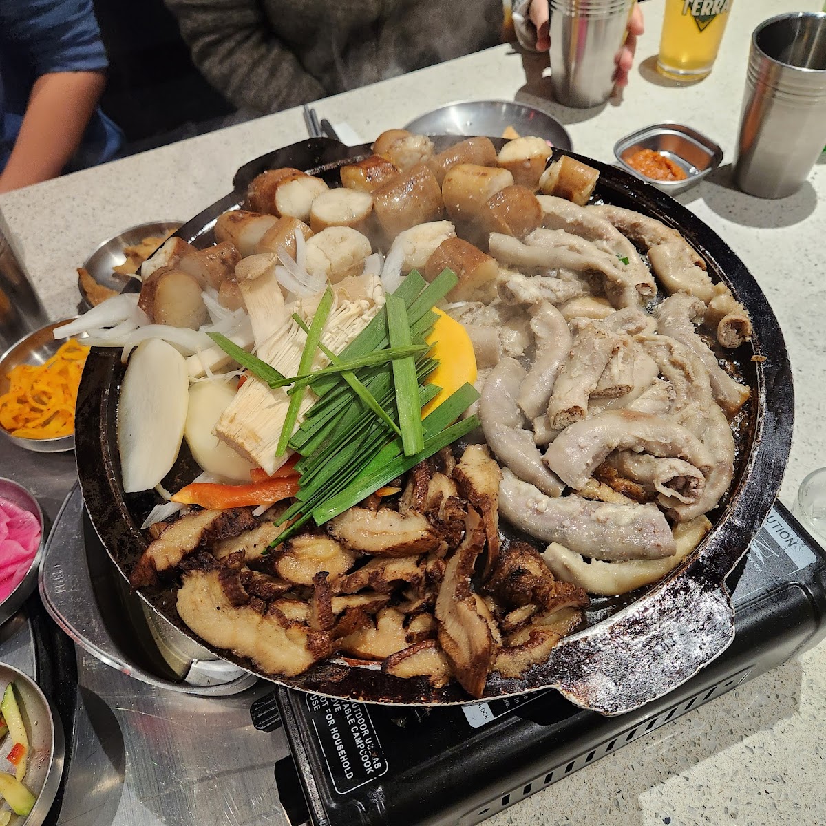 The advanced cooking setup at each table is a key highlight. Instead of traditional charcoal, Don Blanc utilizes a unique ga's stove with a convex iron wok, which allows for an interactive dining experience where the staff expertly manages the cooking of your chosen meats like Steamed Pork Belly Wrap (Bossam) and Spicy Stir-Fried Chicken Gizzard. This means you can sit back, relax, and watch as the staff crafts your meal to perfection while you enjoy the vibrant atmosphere.
